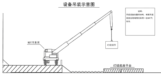 根據(jù)本工程特點,對本工程需要機械吊裝的材料設備選擇汽車吊,汽車吊的優(yōu)點是轉移迅速,機動靈活,對路面破壞小,完全可以實現(xiàn)本工程的吊裝任務。