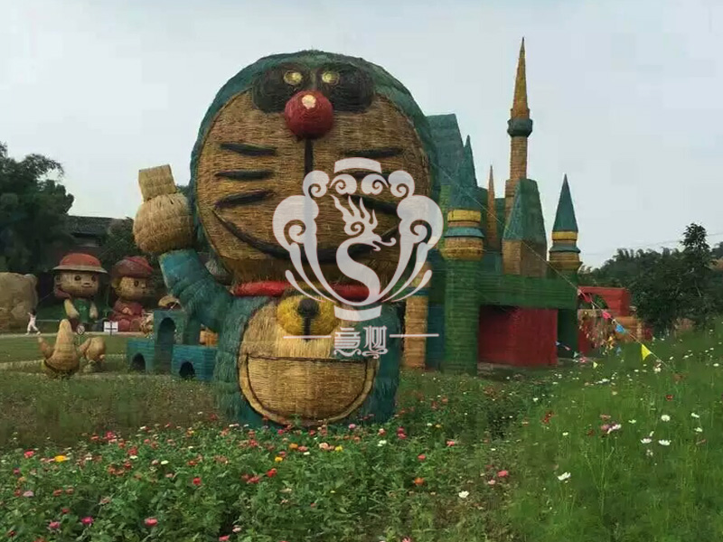 現在的精致稻草人藝術通常是由專業美術老師的造型放樣,然后由焊工師傅焊接出立體造型造型,然后以稻草或者稻草繩為材料編捆制作而成。