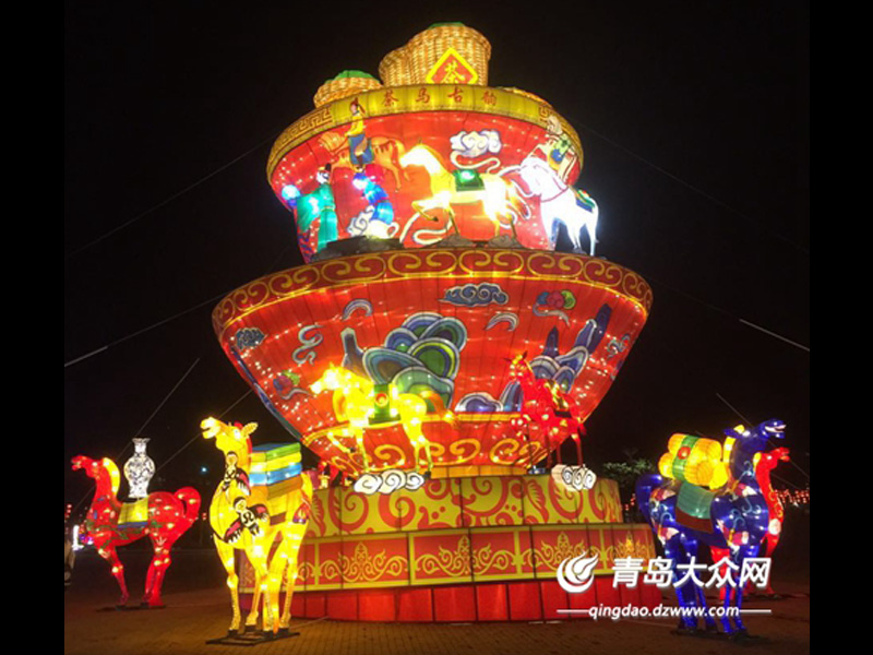 今年的賞燈節(jié)以“盛世中國夢,多彩絲路情”為主題,以張騫出使西域、鄭和下西洋等歷史事件為主線,用彩燈的藝術(shù)形式展現(xiàn)“絲綢之路經(jīng)濟(jì)帶”、“二十一世紀(jì)海上絲綢之路”沿線各國的建筑藝術(shù)、商業(yè)藝術(shù)、人文藝術(shù)。 入口處的“好客山東”燈組結(jié)合景區(qū)原有主題綠雕,以曲阜杏壇為背景,傳達(dá)出“有朋自遠(yuǎn)方來,不亦樂乎”的美好寓意,歡迎八方游客的到來。地池水面上極具中國風(fēng)的超大型燈景“盛世中華”,以巨大的鏤空燈籠為主體,配以鮮艷的花朵和四條鯉魚,造型精致,具有極強(qiáng)的視覺沖擊力,讓人流連忘返。“歡樂影像”燈組利用投影儀和地面彩燈,讓游客可以參與互動,吸引了不少觀賞者,尤其受孩子們的歡迎。市民游客紛紛表示,今年的燈組新穎、好看又富有意義,特別值得一看。
