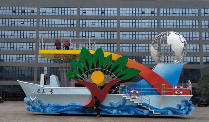 《歡樂彩虹船》長15米高7米寬6米玻璃鋼彩繪花車。此花車展現(xiàn)出一片在小船上狂歡的氛圍,與們園區(qū)的游玩設(shè)施相照應(yīng),配合ip人偶演員熱情的互動,使游客感覺猶如與我們的演員一起在這條彩虹船上盡情的歡樂。