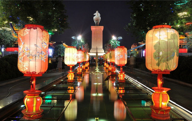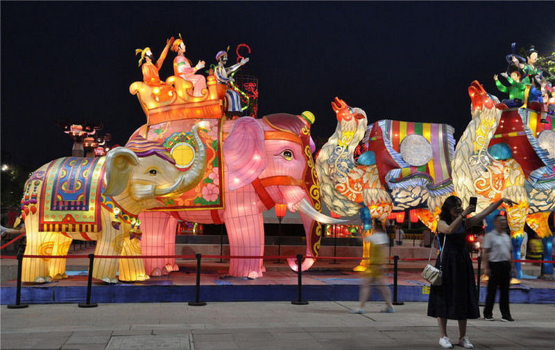 古城西安天氣晴好,緊挨著大雁塔的大唐不夜城游人如織。白天,古色古香的燈組和各種唐代仕女五彩繽紛,夜幕降臨,燈光璀璨,一盞盞仿古的燈籠、一組組彰顯絲路風情的花燈,與現代元素的彩燈交相輝映,流光溢彩,美不勝收。